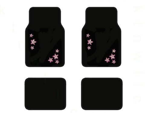Love the heady rush of fragrant flowers in the springtime? Get the Pink Flower set of 4 universal fit plush carpet floor mats. This floor mat is a heavy duty plush thick pile carpet floor mat with licensed graphic design. Embossed logo makes the design stand out! The backing is made from nipped PVC that prevents sliding and shifting. There is no better way to protect your vehicle's floor while having a bit of fun. Now you can have the season of spring all year round in your car with the Pink Flower set of 4 universal fit plush carpet floor mats! A great gift idea for the lovers of springtime, flowers, and artistic designs! Dimensions - front: 26 1/2 X 17, Dimensions - rear : 17 X 13.