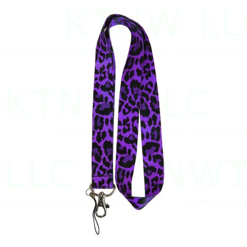 Animal Print Key Chain Lanyard with Swivel Key Clip and Cellphone Strape - Leopard Purple